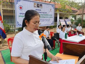 លោកស្រី ម៉េង គឹមហួយ សមាជិកគណៈកម្មាធិការសាខាកាកបាទក្រហមបាន អានសារលិខិតរបស់សម្តេចកិត្តិព្រឹទ្ធបណ្ឌិត ប៊ុន រ៉ានី ហ៊ុនសែន ប្រធានកាកបាទក្រហមកម្ពុជានិងជាឥស្សរជនឆ្នើមថ្នាក់ជាតិនៃផែនការសកម្មភាពរួមអគ្គលេខាធិការអង្គការសហប្រជាជាតិដើម្បីសុខុមាលភាពស្ត្រីនិងកុមារ ថា ការថែទាំសុខភាព សុវត្ថិភាពផ្នែកសុខភាពនិងប្រព័ន្ធភាពធន់ផ្នែកសុខភាពពិតជាមានសារៈសំខាន់ ។